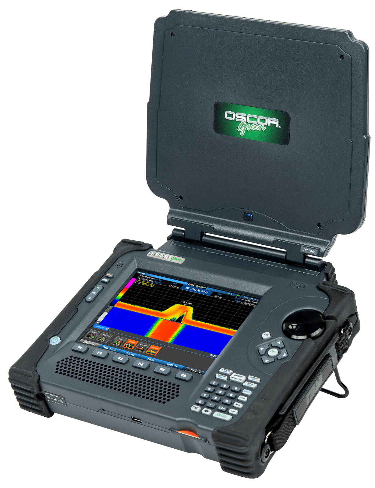 The OSCOR Green Spectrum Analyzer is designed to detect illicit eavesdropping signals, perform site surveys for communication systems, conduct radio frequency (RF) emissions analysis, and investigate misuse of the RF spectrum. The OSCOR Green is a portable spectrum analyzer that sweeps 24 GHz in one second to quickly detect transmitting electronic surveillance devices and ensure that spectrum activity is captured.Efficiency: reference and target traces are quickly attained, stored, and compared for rapid analysis and a waterfall display generates a spectrogram of receiver traces over time