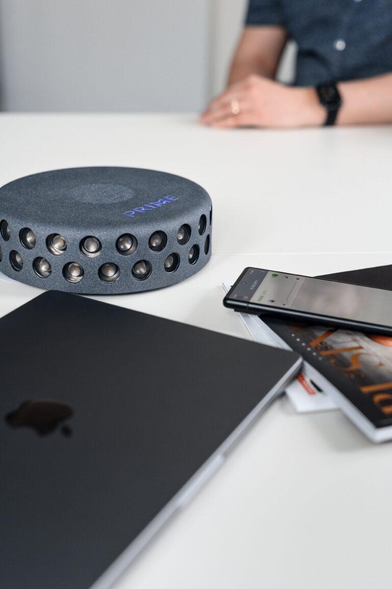 The PRIME omnidirectional speech protector is the successor to one of our best-selling products, the EO-1. Unlike its predecessor, it has improved ultrasound software as well as a processor. It is compatible with our app, which is available for both iOS and Android.