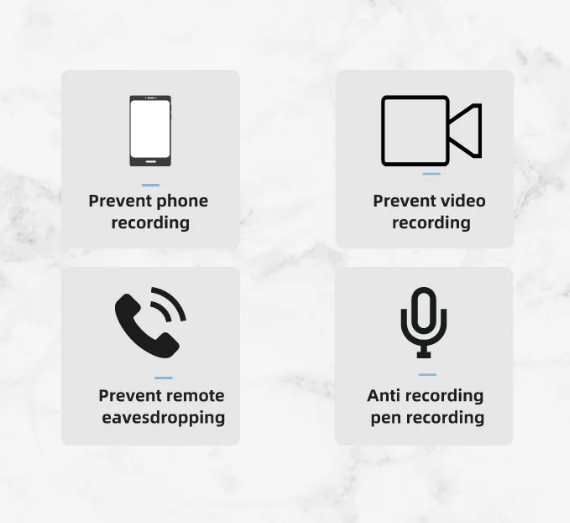 YX-007-NK new recording jammer is a new high-tech product developed by our research and development personnel based on YX-007-NK according to customer needs after comprehensive upgrading. YX-007-NK new recording jammer size is not much different from YX-007-NK (there are detailed data on the parameters), the transmission is the same as three sides, but the transmission terminal layout and transmission Angle are improved, the transmission Angle on each side is increased from the original 90-120 degrees to 90-150 degrees; The transmission Angle can reach 300 degrees multi-angle jamming, and some recording equipment can reach 360 degrees. The jamming range on each side is significantly improved in the vertical direction (there are differences in the effect of different recording devices). YX-007-NK new recording jamming device still adopts the shape of air purifier, with strong concealment; Compared with YX-007-NK air purifier, this product also adds UV sterilization, negative ion purification and intelligent display screen. YX-007-NK new recording jammer is a new product of recording jammer series, suitable for the leader's office, small conference room and other scenes.