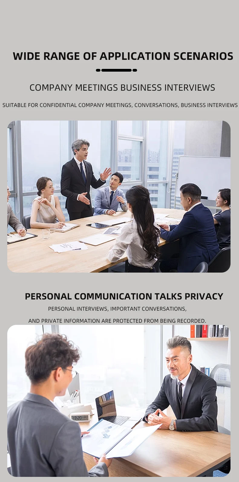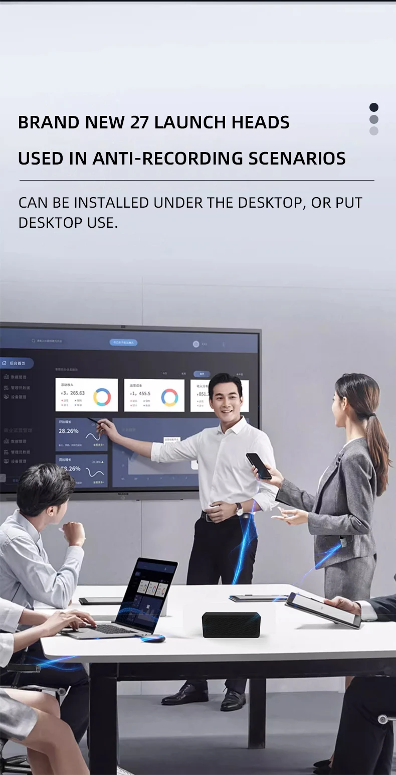 It can Block Iphon 13 14 15 voice recorder.This is the an-recording and anti-eavesdropping blocker device, it can avoid your conference information leakage.